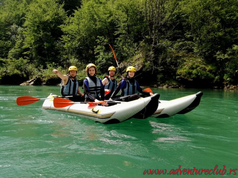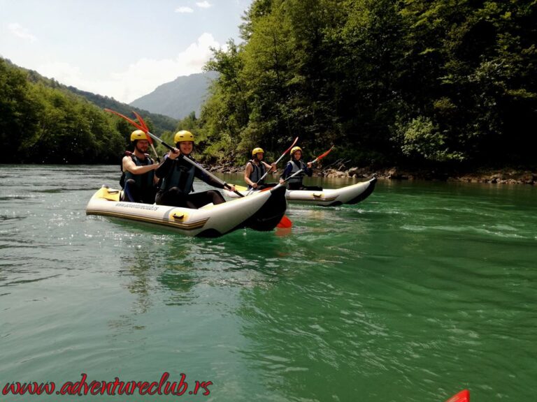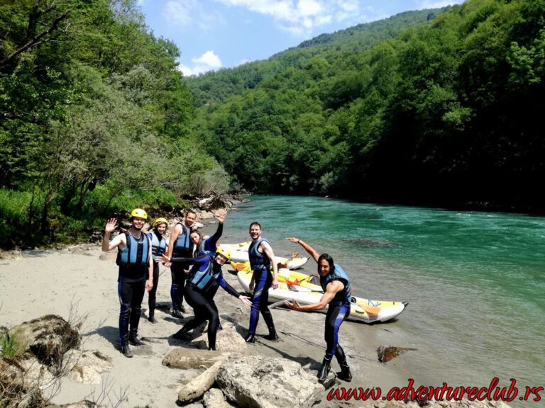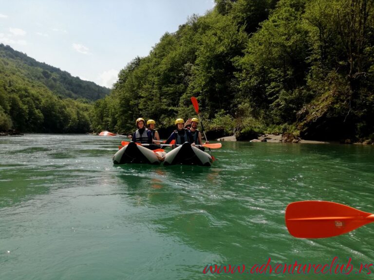 Ujutru su nas čekali kajaci dvosedi i nakon kratke obuke krenuli smo niz brzake Drine, na dužini od 12km smenjivali su se uski stenoviti delovi i male peščane plaže a sa jedne od stena smo probali i naše skakačke sposobnosti. U popodnevnim satima nakon ručka krećemo nazad ka Beogradu, preko Višegrada i Mokre Gore. U Kusturičinom Drvengradu svraćamo na večeru i za trenutak se vraćamo u srednji vek.