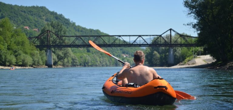 Drina Kajaking Avantura – Iskusite nezaboravnu avanturu na vodi, vidite prelepi vodopad reke Vrelo, osetite svežinu Drine u toplim letnjim danima, skrenite pogled na šumovite predele dok prolazite kroz brzake ili se samo opustite uz nesvakidašnje boje reke Drine.