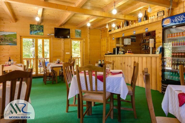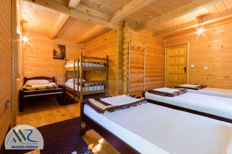 Smeštaj je obezbedjen u kampovima “Tara Raft” i “Modra rijeka”, gde nas čekaju ljubazni domaćini, restoran sa domaćom kuhinjom, bungalovi, male kamp kućice, kao i veliki prostor za sopstvenu kamp opremu.