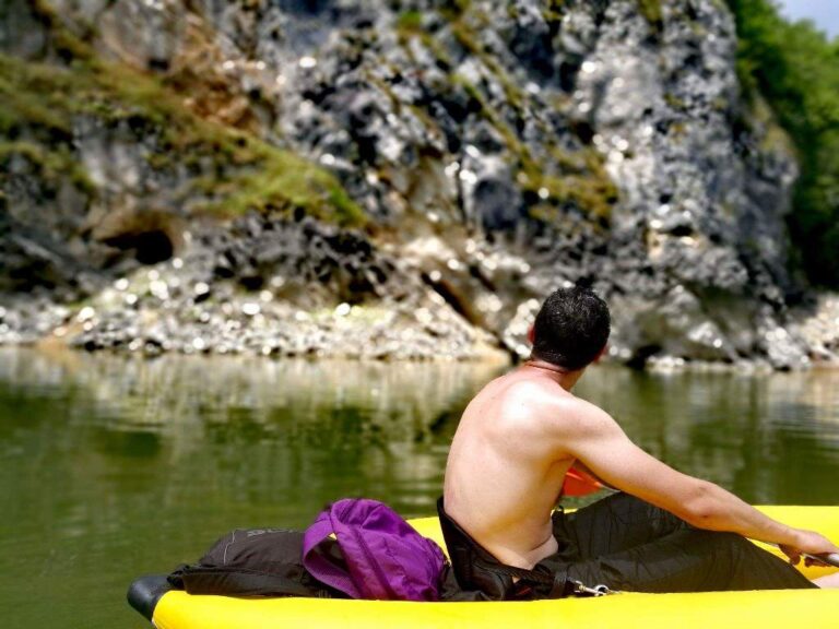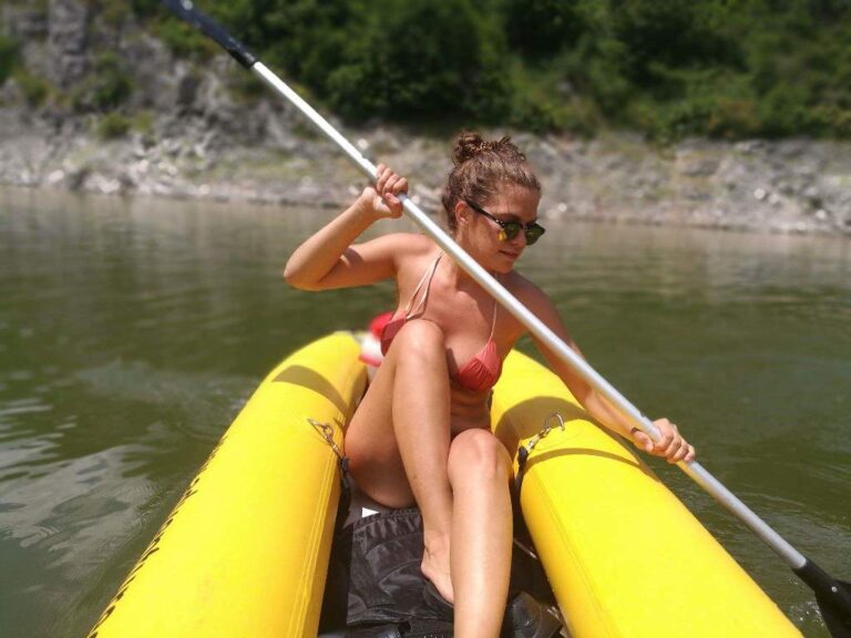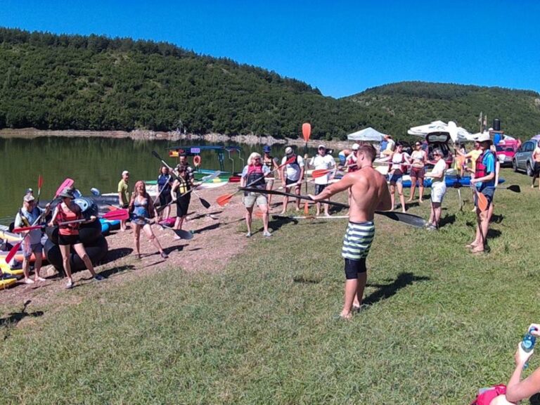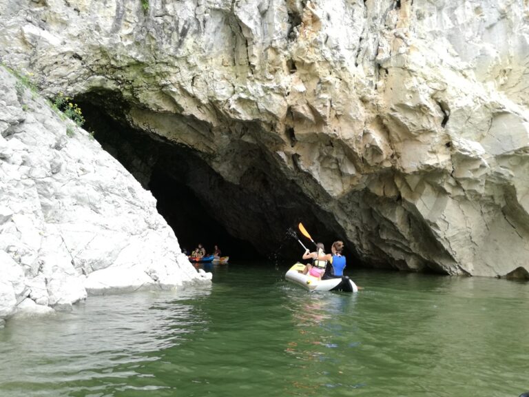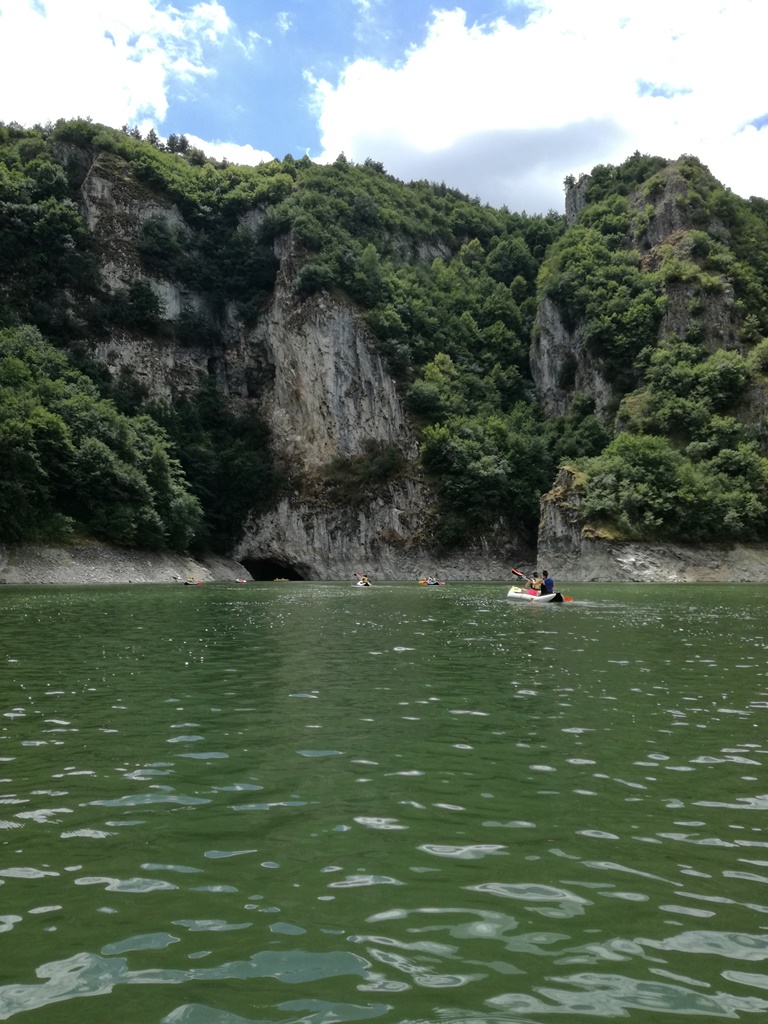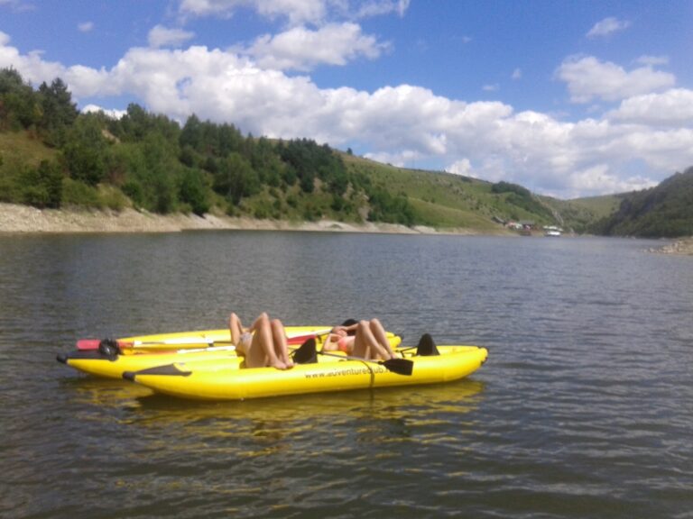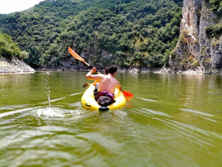 Mi Vam nudimo zaista najatraktivniji način da iz totalno druge perspektive sagledate sve lepote ovog kanjona, a to je kajaking. U stabilnie kajake na naduvavanje, koji su veoma pogodni za osobe bez prethodnog iskustva, sedaju po 2 osobe koje sopstvenom snagom pokreću čamac. Budući da je u pitanju jezero, snaga nije presudna. Ova kajak avantura obuhvata 12km predivnog kanjona, kajacima se ulazi u pećinu, kupamo se na krečnjackim obalama jezera, a takodje se penjemo na najpoznatiji vidikovac “Molitvu” koji je na samo 2km pešačenja od jezera.
