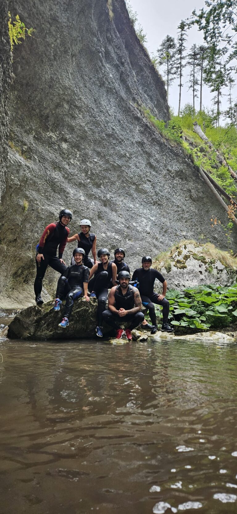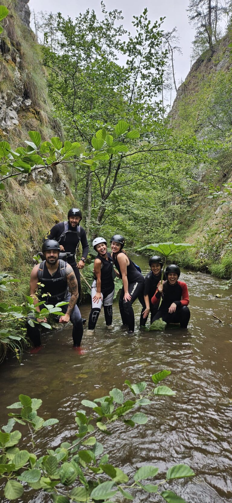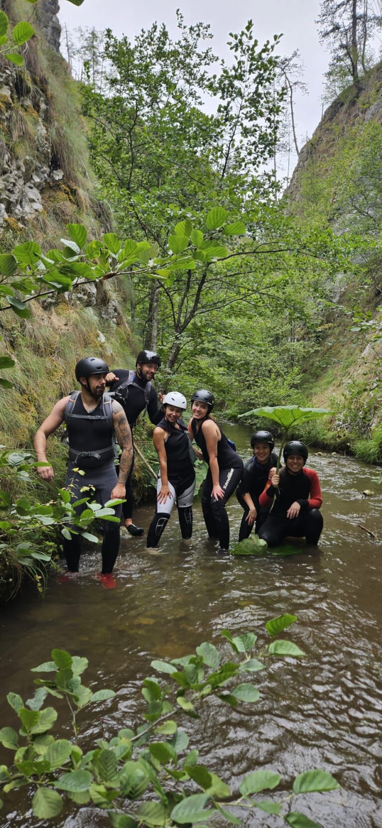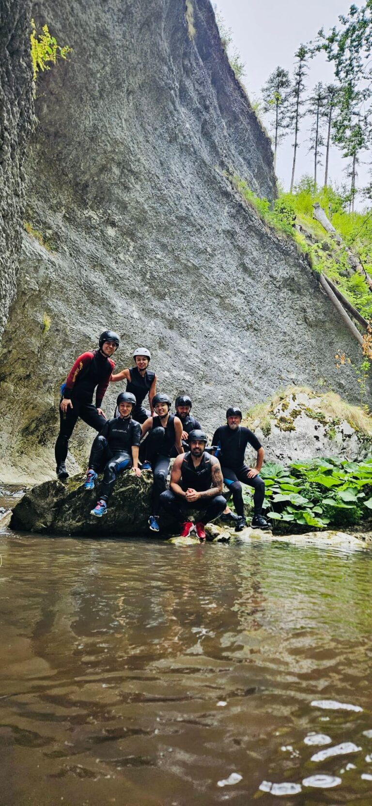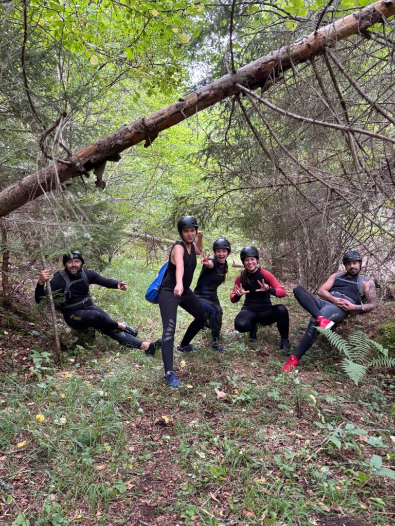 Nastavljamo niz kanjon,pažljivo prelazimo preko oborenih stabala, skačemo sa stene u krečnjački bazen udubljen u koritu kanjona. Na nekoliko mesta potrebno je preplivati duboku vodu sa svom opremom koju nosimo, a pre samog izlaska iz kanjona, na proširenom delu, odmaramo se na ugrejanim stenama obasjanim podnevnim Suncem i posle okrepljenja nastavljamo do izlaska iz kanjona.